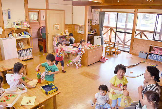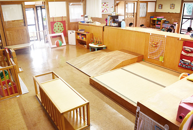 保育園で一番小さい子どもたちのクラスです。一人一人のリズムに合わせた生活が送れるように、落ち着いた環境を整えています。和やかな雰囲気の中で日々を過ごします。