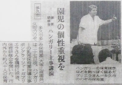 | 2005年10月 | ハンガリーより心理学者セチェイ・ヘルミナさん来園(「保育園での美術教育」「0~3歳児の保育最初の3年間」 著者) |
